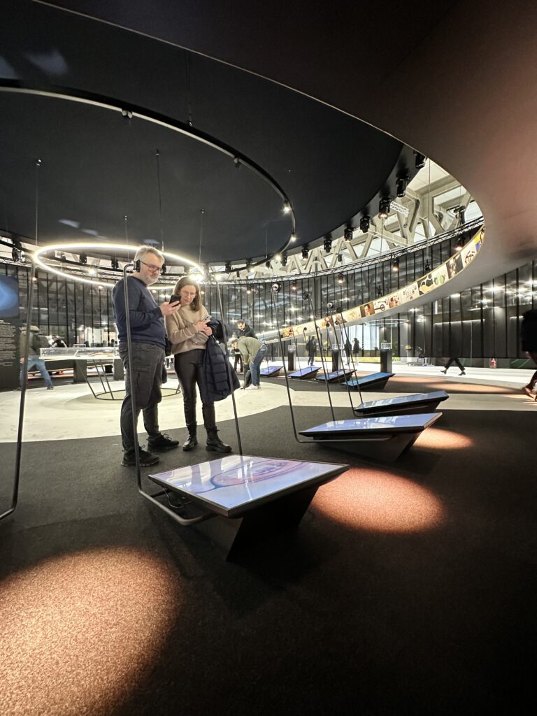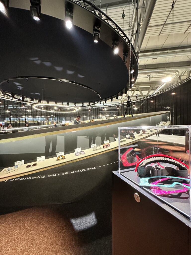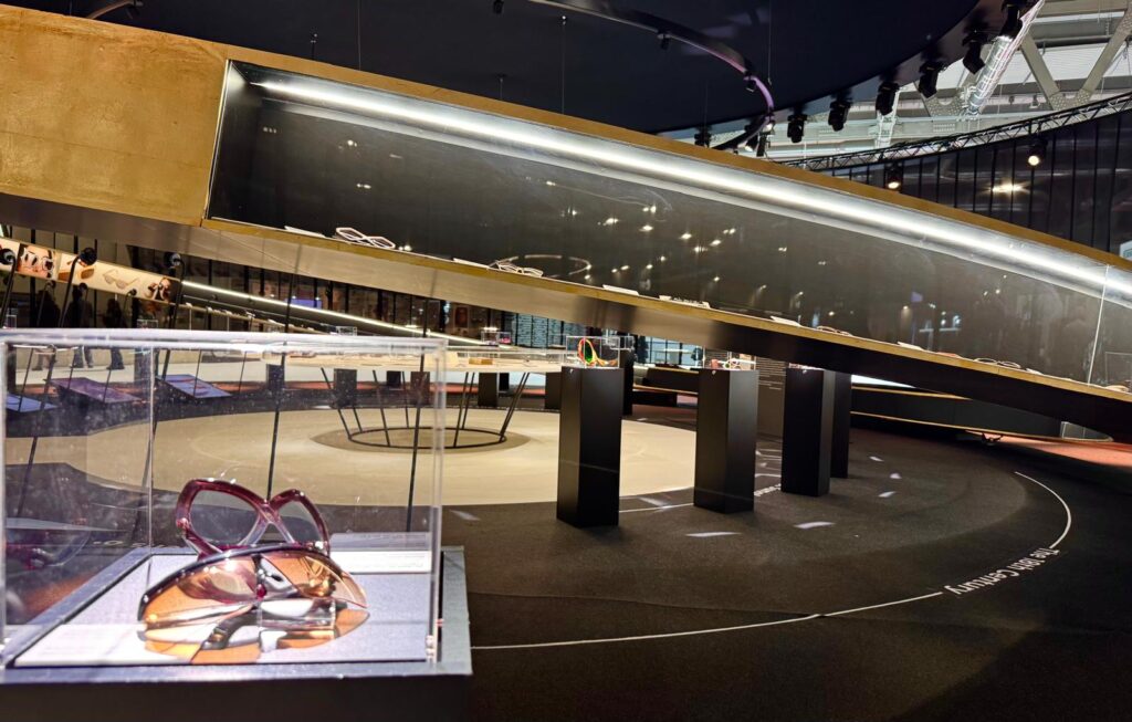 The Lens of Time’ ricostruisce la storia dell’occhiale attraverso pezzi d’epoca e modelli simbolo, mettendo in relazione manifattura, design e uso sportivo. Il percorso è pensato come un anello che richiama la forma dell’occhiale e accompagna il visitatore lungo una narrazione cronologica: dalle origini e dalle prime sperimentazioni fino agli oggetti legati alla pratica sportiva e, in particolare, agli sport invernali.