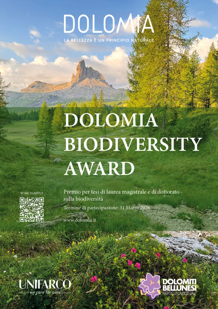 Nasce tra le Dolomiti bellunesi, dove la biodiversità è parte della cultura del territorio, un nuovo riconoscimento dedicato alla ricerca scientifica italiana: si chiama Dolomia Biodiversity Award ed è un premio nazionale rivolto alle migliori tesi di laurea magistrale e di dottorato dedicate ai temi della biodiversità, della conservazione degli ecosistemi e dei modelli sostenibili, con particolare attenzione ai contesti montani.