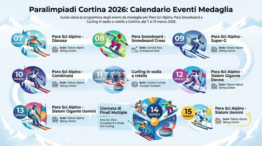 Dal 6 al 15 marzo 2026 la località ampezzana tornerà poi protagonista con le Paralimpiadi invernali. Cortina sarà uno dei cluster principali dei Giochi paralimpici: sulle Tofane si disputeranno le gare di para alpine skiing, con uomini e donne impegnati nelle diverse specialità veloci e tecniche, mentre un’area dedicata ospiterà il para snowboard. Il Cortina Curling Olympic Stadium sarà invece teatro del wheelchair curling e accoglierà la cerimonia di chiusura delle Paralimpiadi, a conferma del ruolo centrale della città nella dimensione inclusiva e accessibile dei Giochi.