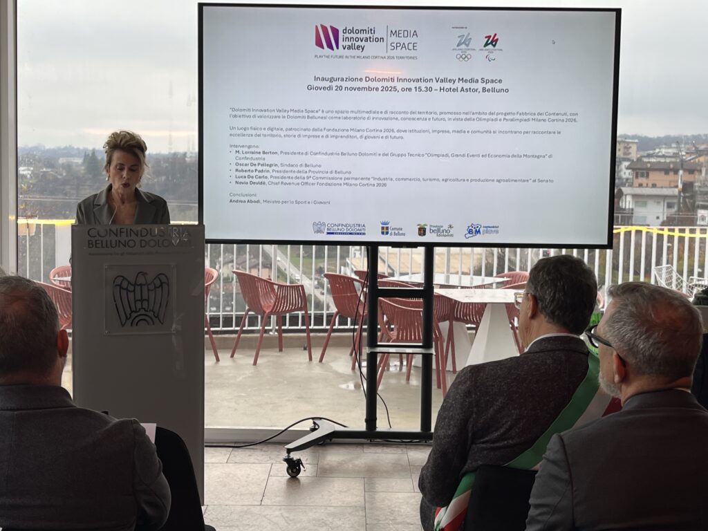 Una finestra ‘digitale’ sulle Dolomiti, per spingere l’innovazione e sfruttare al massimo il potenziale, per la montagna veneta, delle Olimpiadi Milano-Cortina 2026. O “Cortina-Milano”, rispettando l’ordine alfabetico come suggerisce il presidente della commissione Industria del Senato Luca De Carlo all’inaugurazione del Dolomiti Innovation Vally con il ministro dello Sport Andrea Abodi, che ha tagliato il nastro del nuovo spazio multimediale a Belluno.