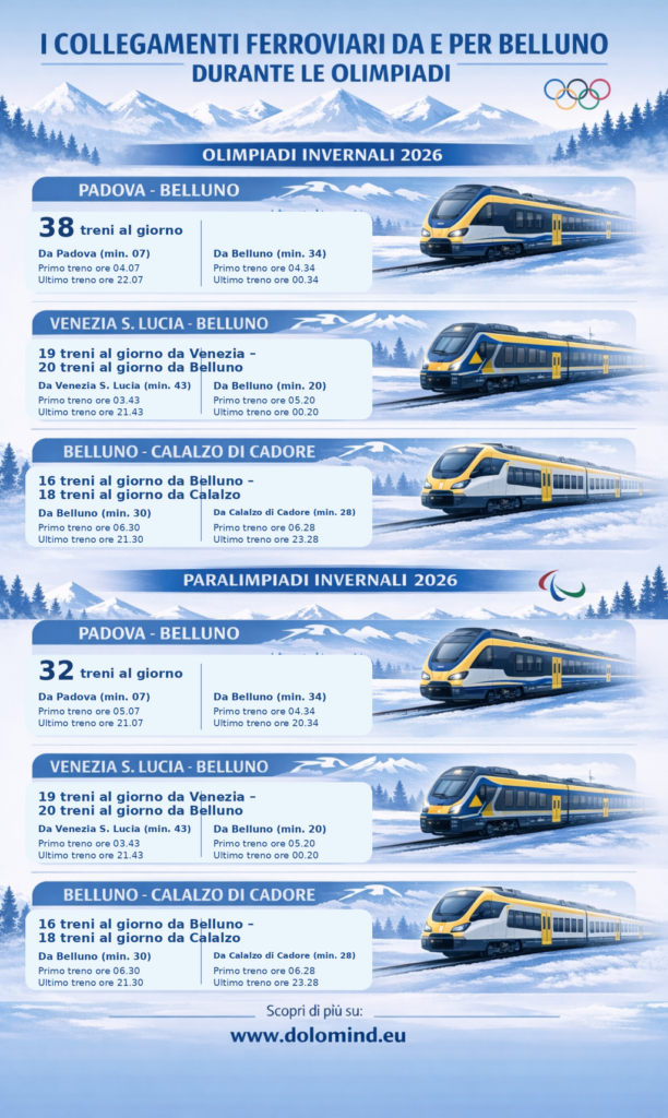 Il quadro generale è coerente con quanto annunciato dal Gruppo FS: un’offerta del servizio Regionale potenziata verso il Bellunese, con l’obiettivo di rendere Belluno un accesso ferroviario più competitivo alle sedi di gara e ai servizi su gomma verso Cortina.