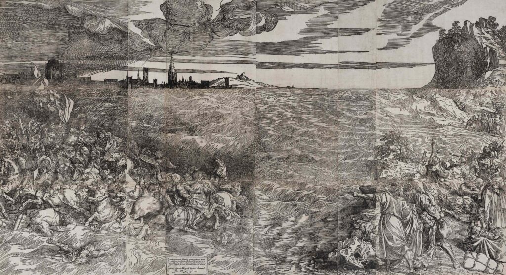 Da una parte c’è la Pala Gozzi (1520), capolavoro della prima maturità di Tiziano. Dall’altra la gigantesca xilografia con la Sommersione del Faraone (1549). Metterle l’una accanto all’altra, nel contesto cadorino, significa non solo osservare come muta il linguaggio dell’artista, ma anche come il paesaggio diventi via via un elemento sempre più decisivo: non semplice fondale, bensì spazio narrativo, culturale, persino politico.