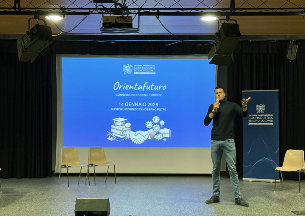 Si è concluso con grande partecipazione Orientafuturo, l’evento di orientamento promosso dal Gruppo Giovani Imprenditori di Confindustria Belluno Dolomiti, che si è svolto nelle giornate del 13 e 14 gennaio a Belluno e a Feltre, coinvolgendo con il format del teatro d’improvvisazione oltre 500 studenti delle classi quarte degli Istituti Superiori della provincia.