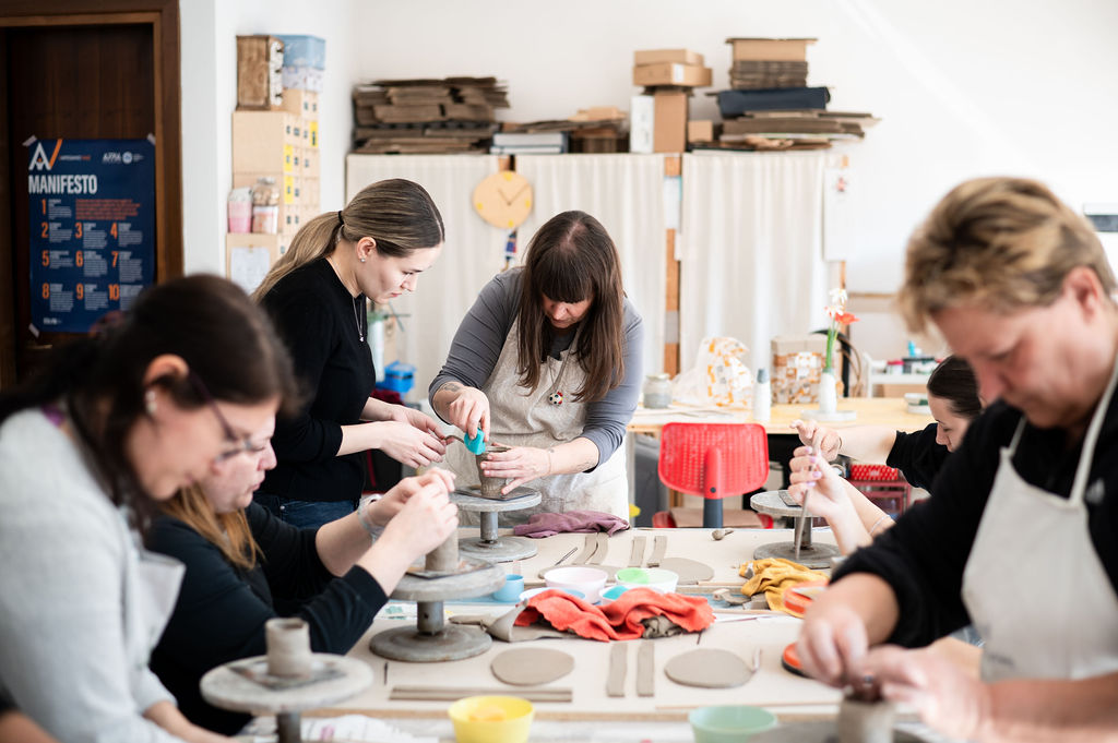 Parallelamente tiene corsi serali per adulti: c’è chi è alla prima esperienza e chi, dopo cinque edizioni, non smette di tornare. Nel suo laboratorio si respira un clima di comunità. “La ceramica ha qualcosa di terapeutico. Ti costringe a rallentare, ad accettare l’imperfezione, ad aspettare”.