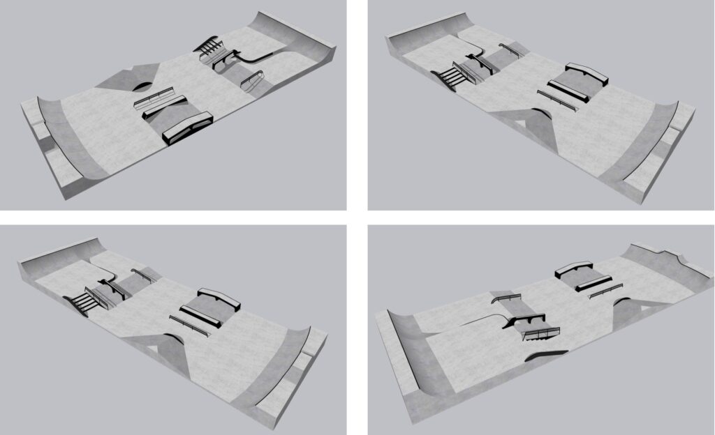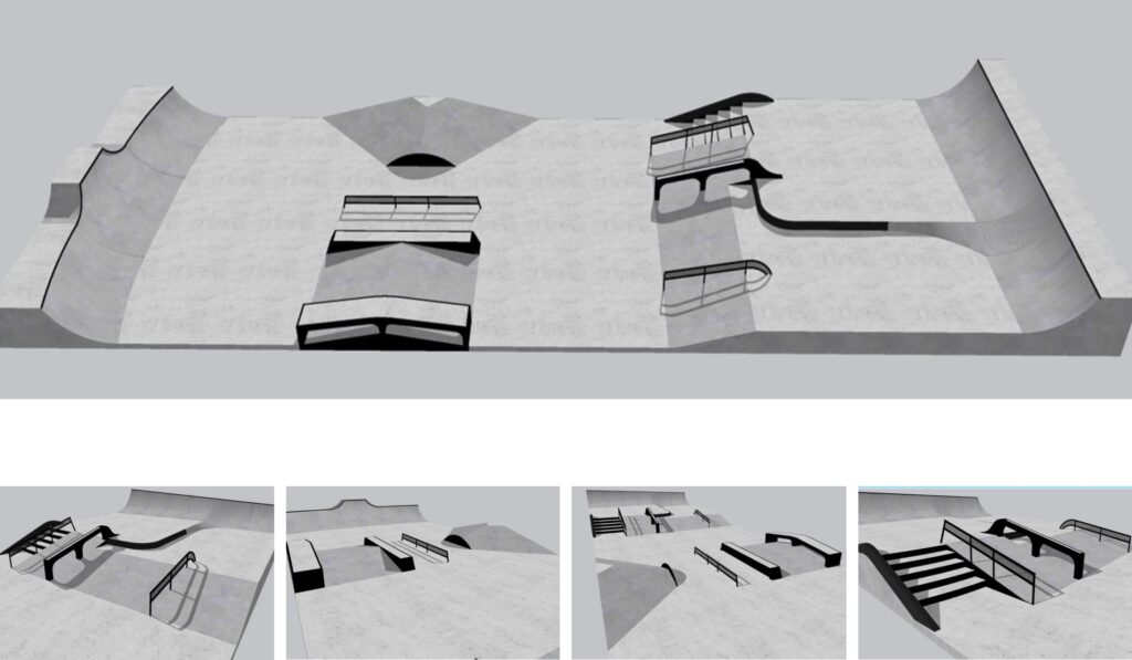 Il nuovo skatepark occuperà una superficie di circa 290 metri quadrati, con dimensioni di 10 metri per 29 e forma rettangolare. Sarà una pista di tipo pump track/skate realizzata in calcestruzzo strutturale, scelta orientata a durabilità e ridotta manutenzione. L’impianto è progettato per skater e utilizzatori di BMX, con soluzioni che consentono sia l’esecuzione di trick sia un percorso fluido.